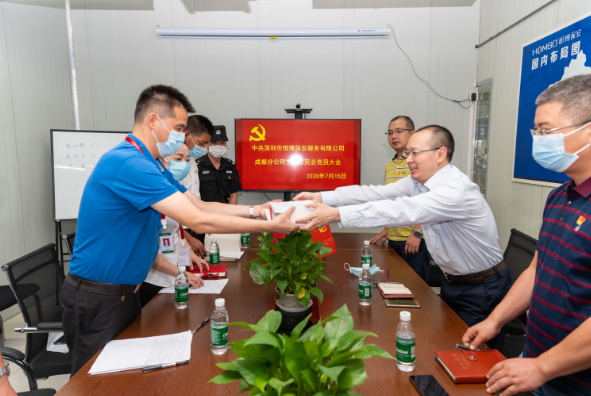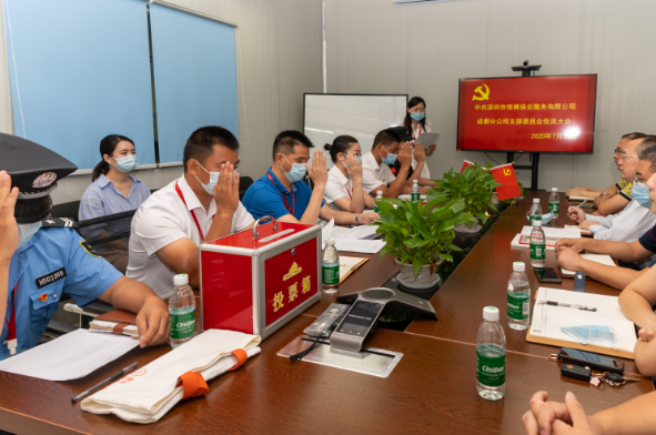 2020年7月15日中共深圳市恒博保安服务有限公司成都分公司支部委员会党员大会召开,选举公司党支部委员会。成都市西园街道党工委书记张毅同志,党工委副书记、纪工委书记卢庆同志及相关单位其他同志莅临现场,见证并监督支部委员会的产生。此次选举工作坚持党的领导方针,紧密结合公司的发展和党支部的建设,一切以实际出发、实事求是、与时俱进。 会上,各党员一致通过《选举办法》(草案),党支部委员会委员候选人分别进行竞职陈述,通过各党员选举投票产生了第一届支部委员会。 会后,公司党支部委员会委员召开会议,戚向东同志当选为党支部书记,蒋禹同志当选为党支部组织委员,杨双燕同志当选为党支部宣传委员。整个选举工作程序正规、公开透明、公平公正、圆满成功。 新一届公司党支部书记戚向东同志表示要做好党员在企业中的先锋模范作用,充分发挥联系企业和服务群众的桥梁纽带作用,成为“党在群众中的耳目手足”和“党在群众中的核心”,在日常工作中,党支部更要冲锋在前,发挥战斗堡垒作用。 成都市西园街道党工委书记张毅同志对大会的成功召开表示热烈祝贺,并向公司党支部第一届成员赠与《党的基层组织制度建设工作手册》、《十九大党章修正案学习问答》等理论学习书籍,并提出殷切期望: 一是党组织成立后要坚持“围绕经济抓党建,抓好党建促发展”这一主题,把企业发展和党建工作深度融合,充分发挥党组织的战斗堡垒作用和党员先锋模范作用,在经营管理、安全生产、技术创新等企业发展中发挥重要作用; 二是要在优化组织设置、壮大党员队伍等方面积极作为,努力把新员工培养成队伍管理能手,把队伍管理能手培养成党员,把党员培养成公司经营管理骨干,为公司发展“引入活水、注入动力、激发潜力”,让党支部和党员队伍成为公司发展的重要力量; 三是认真学习贯彻习近平新时代中国特色社会主义思想,促进党组织始终保持旺盛的生机与活力,不断提升非公经济组织党建活力,助推非公企业高质量发展,使企业在激烈的市场竞争中立于主动,敢于担当,牢记使命,不忘初心,再创新高。 成都市西园街道党工委书记张毅同志,党工委副书记、纪工委书记卢庆同志及相关单位其他同志,与公司第一届党支部委员会委员合影留念。