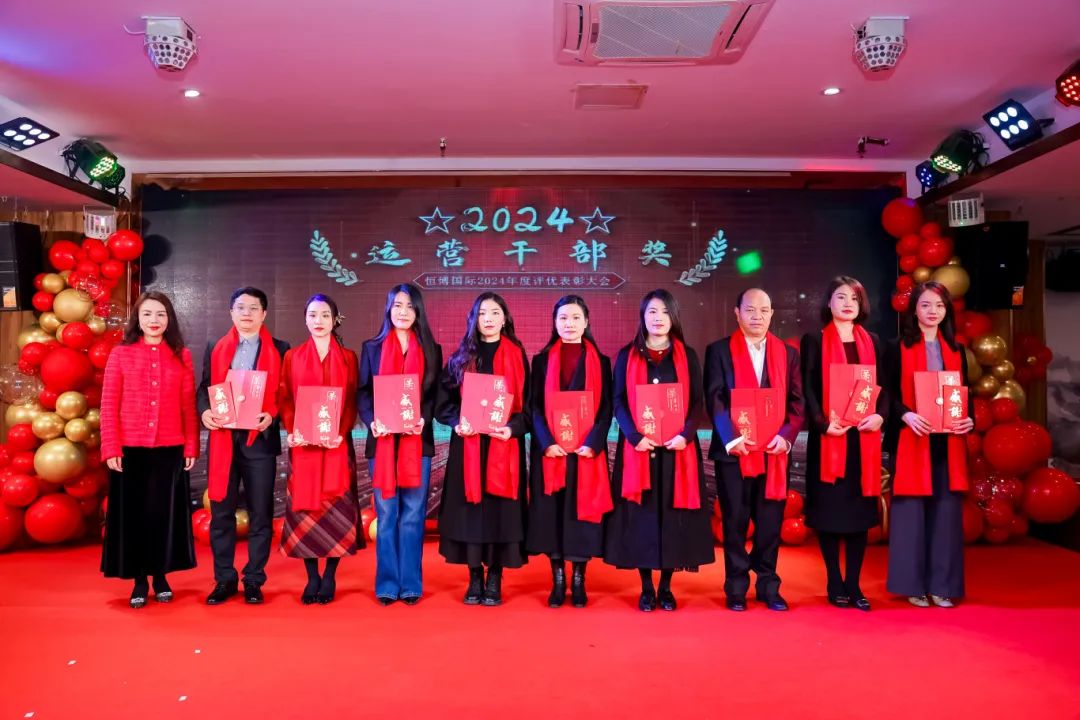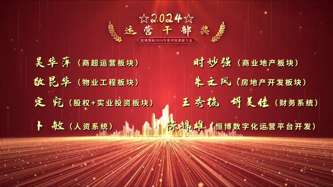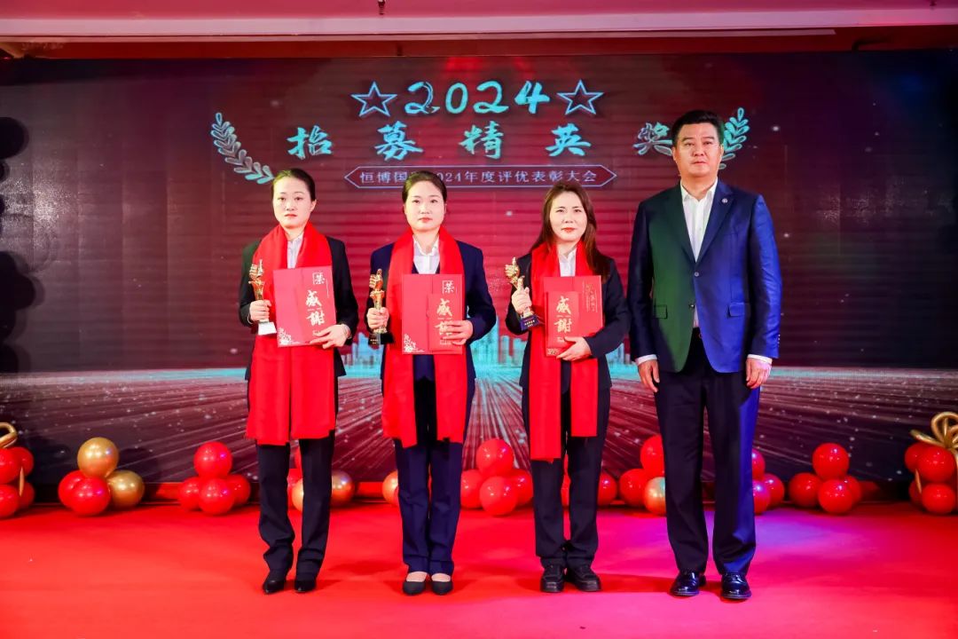 首先,恒博国际人力资源部总监习文宣读了《恒博国际2024年度优秀团队及绩优个人奖项通报》。恒博始终坚持市场导向与客户导向,以“共享资源、共享品牌、共享利润”为宗旨,将市场拓展置于战略优先,通过表彰先进典型,进一步发挥榜样引领的作用。经集团研究决定,市场引领——开疆辟土类运营管理——固本强基类两类奖项共38个获奖团队和员工进行表彰。随后,大会进入颁奖环节!